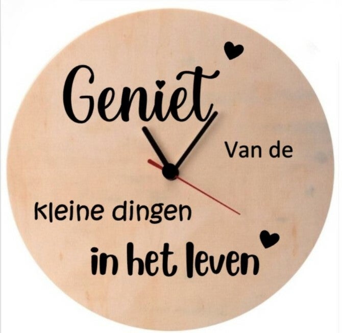 Houten Klok met tekst "Geniet van de kleine dingen"